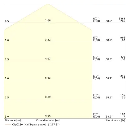 The colour code is a combination of colour rendering (CRI) and light colour (Kelvin). The first number indicates the colour rendering (1 = very poor colour rendering, 9 = maximum colour fastness). The second and third number contains the light colour. Example: the colour code 830 consists of good colour rendering (8) and warm white light (3000K). |