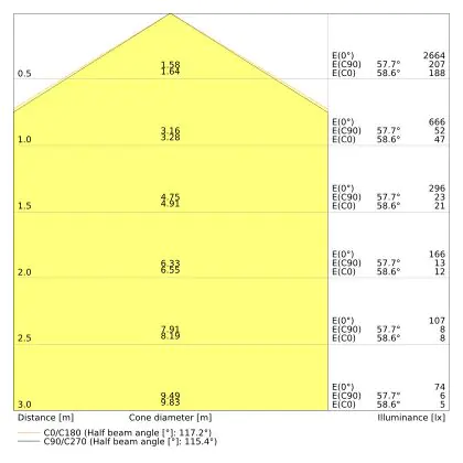 The colour code is a combination of colour rendering (CRI) and light colour (Kelvin). The first number indicates the colour rendering (1 = very poor colour rendering, 9 = maximum colour fastness). The second and third number contains the light colour. Example: the colour code 830 consists of good colour rendering (8) and warm white light (3000K). |