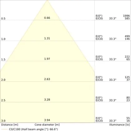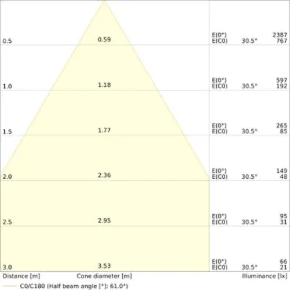 The colour code is a combination of colour rendering (CRI) and light colour (Kelvin). The first number indicates the colour rendering (1 = very poor colour rendering, 9 = maximum colour fastness). The second and third number contains the light colour. Example: the colour code 830 consists of good colour rendering (8) and warm white light (3000K). |