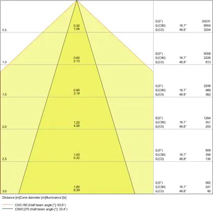 The colour code is a combination of colour rendering (CRI) and light colour (Kelvin). The first number indicates the colour rendering (1 = very poor colour rendering, 9 = maximum colour fastness). The second and third number contains the light colour. Example: the colour code 830 consists of good colour rendering (8) and warm white light (3000K). |