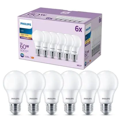 Multipack 6x Philips Bulb LED E27 Pear Frosted 8W 806lm - 827 Extra Warm White