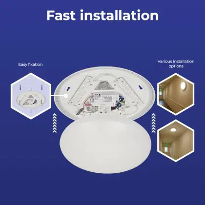 Lighting with a built-in emergency lighting unit (battery) continues to burn for a certain time if the power fails. |