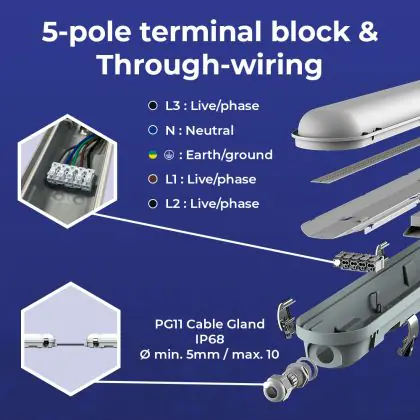 Noxion LED Waterproof Batten Poseidon V3.0 35-65W 4550-9100lm - 830-865 CCT | 150cm - Through Wiring (5x2.5mm2)