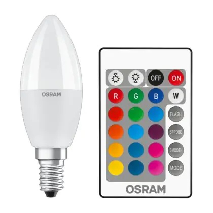 Osram LED E14 Candle Frosted 6W 470lm - 827 Extra Warm White | RGBW - Dimmable - Remote Control - Replaces 40W