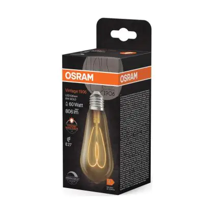 Osram Vintage 1906 LED E27 Edison Filament Gold 8W 806lm - 922 Extra Warm White | Best Colour Rendering - Dimmable - Replaces 60W