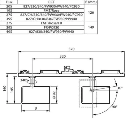 The colour code is a combination of colour rendering (CRI) and light colour (Kelvin). The first number indicates the colour rendering (1 = very poor colour rendering, 9 = maximum colour fastness). The second and third number contains the light colour. Example: the colour code 830 consists of good colour rendering (8) and warm white light (3000K). |