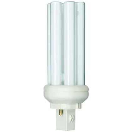Philips PL-T 2P are compact fluorescent lamps with separate power supply. They are very energy efficient and must be used with a conventional ballast. The lamps consist of 6 tubes and a 2 pin socket. With their GX24q-3 socket, Philips PL-T 26W 830 2P easily integrate into light fixtures.