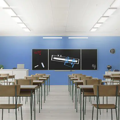 The Unified Glare Rating (UGR) indicates the extent to which the light of a product is blinding. This value differs per application and must comply with European standards (EN 12464-1). A low UGR value stands for a low glare factor. For offices and schools lighting with a UGR<19 value is mandatory and for public areas UGR<22.
